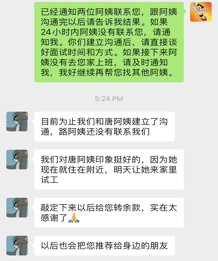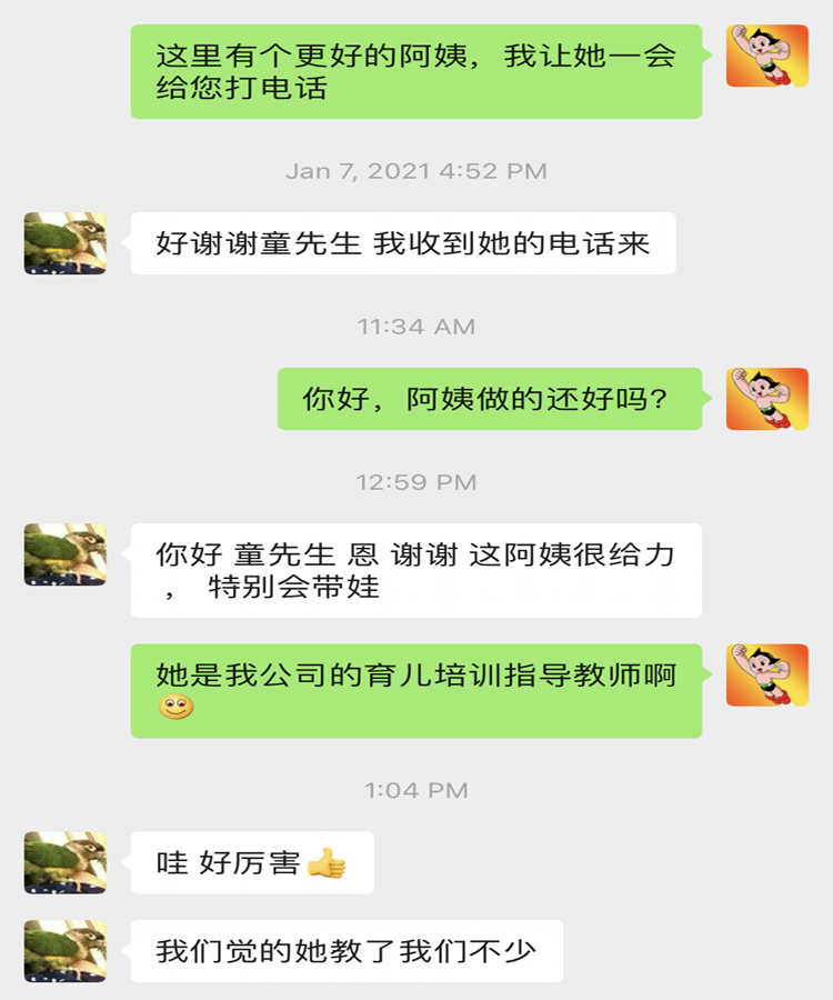 以下微信对话截屏均为天天家政客户的真实评价,天天家政对其真实性承担法律责任。